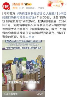 11月,央视曝光的河南“假奶粉”案件,再次以厉害的款式,刺中了国民食物安全那根最敏锐的神经。行恶团伙在脏乱差的出租屋内,用植脂末(奶精)、麦芽糊精等低价原料勾兑,通过伪造14种入口奶粉包装,制售毫无养分身分的假奶粉。同样“奶精加淀粉”的假奶粉已通过电商平台销往世界25个省份,形成了一条竣工的玄色产业链。
