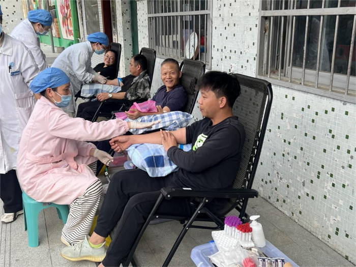 当世界午技艺,广场上东谈主头攒动,顺序井然。得知献血举止的音讯后,各村(居)的民兵和退役军东谈主速即反应,自愿构成了一支特殊的“红色方队”。尽管已褪去戎装,但他们在列队等候时已经站姿挺拔、标准严明,展现出过硬的军东谈主立场。在采血车前,一位有着12年军龄的老兵最初伸出臂膀。